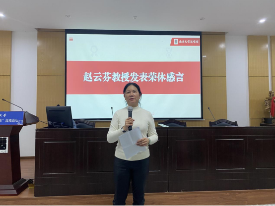 赵云芬教授对公司领导和老师们对她的关心爱护表示衷心地感谢,通过“感谢”、“感言”、“感恩”三个部分表回顾了自己38年的教师生涯,为自己桃李芬芳感到快乐,为公司、同事的关怀感到幸福,为公司、学科的发展变化感到自豪,并表示自己退而不休,会在人生的赛道旁为伟德国际1946的发展发挥余热。