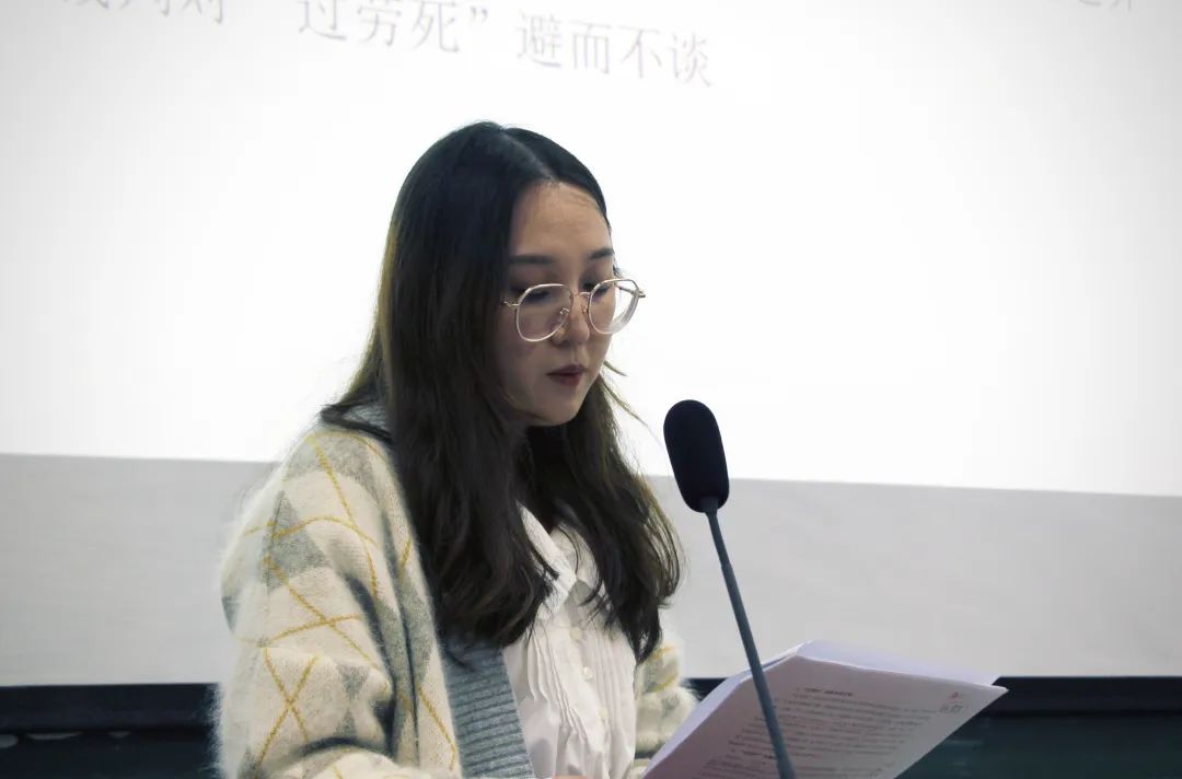 硕士研究生张馨月报告的论文为《“过劳死”法律规制进路探究》。文章指出《民法典》第1232条将惩罚性赔偿制度引入了环境侵权领域,使其适用的领域变得更加广泛。由此,近年来备受关注的环境侵权问题,特别是农业环境污染有了更加坚实的制度保障。该文认为虽然新法条的引入为司法实践提供了现实的法律依据,但是在具体的可操作性以及合理性上仍然需要及时地进行解释和补充。文章通过对当前惩罚性赔偿制度在环境侵权案件中实施现状的分析,提出相应的建议和看法,为完善惩罚性赔偿制度在环境侵权领域的运用提供建议。