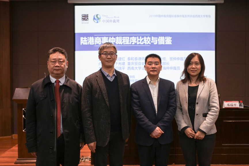 2019年11月6日下午14:30,由伟德国际1946、中国国际经济贸易委员会西南分会共同主办的中国仲裁周国际商事仲裁系列伟德BV1946官网专场讲座在伟德国际1946举办。本次讲座的主讲人为贸仲仲裁员、泰和泰律师事务所副主任杨建红律师,点评人为重庆贸促会法律事务部部长于光建部长,伟德国际1946教授、海仲仲裁员邓瑞平教授担任了此次讲座的主持人。此外,一同出席讲座的还有中国国际经济贸易委员会西南分会秘书长助理杨明女士。