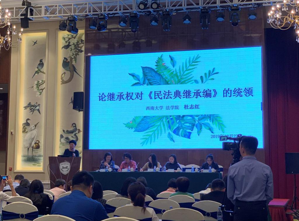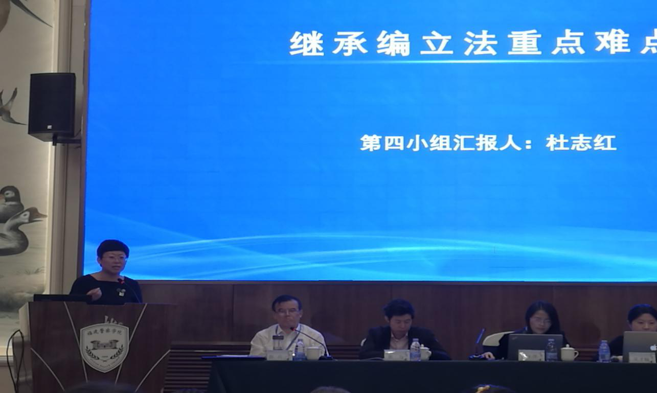 会议分为开幕式、主旨发言、小组讨论、小组汇报、小组讨论、青年论坛和闭幕式六个板块。杜志红老师作为第4组“继承编立法重点难点”的汇报人向大会汇报了第四小组的讨论情况并在之后的青年论坛中以“继承权对民法典继承编的统领”为题作了会议发言。