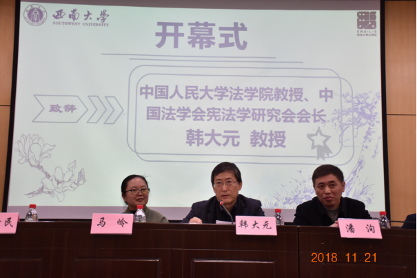 伟德BV1946官网公司党委书记张新民教授主持了下午的开幕式,向与会嘉宾介绍了举办本次会议的背景情况,并对各位嘉宾百忙之中参加本次会议表示衷心感谢!伟德BV1946官网党委副书记潘洵教授、中国法学会宪法学研究会会长韩大元教授、中国法学会宪法学研究会秘书长张翔教授出席开幕式并先后致辞。