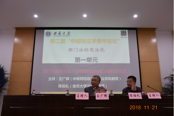 本次论坛的第一单元主题为:“部门法的宪法化:以风险社会的宪法调控为视角”。本单元主持人为中南财经政法大学伟德国际1946王广辉教授、重庆大学伟德国际1946陈伯礼教授。主题报告人为山东大学伟德国际1946李忠夏教授。评议人为:北京航空航天大学伟德国际1946杨登杰副教授、广东财经大学伟德国际1946涂四益副教授、深圳大学伟德国际1946叶海波教授、武汉大学伟德国际1946伍华军副教授、中国社会科公司法学研究所朱学磊博士后。