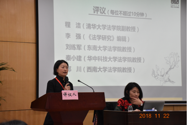 程洁副教授谈到凯尔森认为法官判断过程亦是造法过程,故而法官的解释权是一种实质解释权。并指出现实主义法认为,福利是一个目的,利益分配是一个目的。比如德沃金或者自然法学派认为道德、原则或者权利是它的目标,权利和利益是它不同的两个目标。形式主义的法是在规范层面自洽,现实主义的法实在制度层面自洽,那么中国现在最缺乏的即是自洽体系。