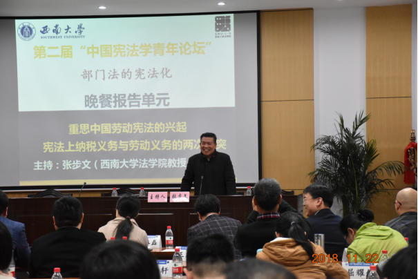 本次论坛的晚餐报告单元由伟德国际1946经理张步文教授主持。两位报告人分别是北京大学伟德国际1946阎天助理教授,报告主题为《重思中国劳动宪法的兴起》;中国社会科公司法学研究所刘志鑫博士后,报告主题为《宪法上纳税义务与劳动义务的两次冲突》。