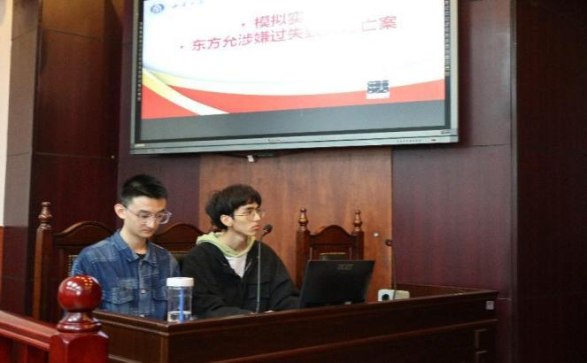 论坛第一个疑难案例为“东某某过失致人死亡案”,员工通过模拟法庭的形式就这一案件进行了实战演练。本次庭审由吴广哲法官担任审判长,六位同学分别担任公诉人、辩护人、被告人与证人。
