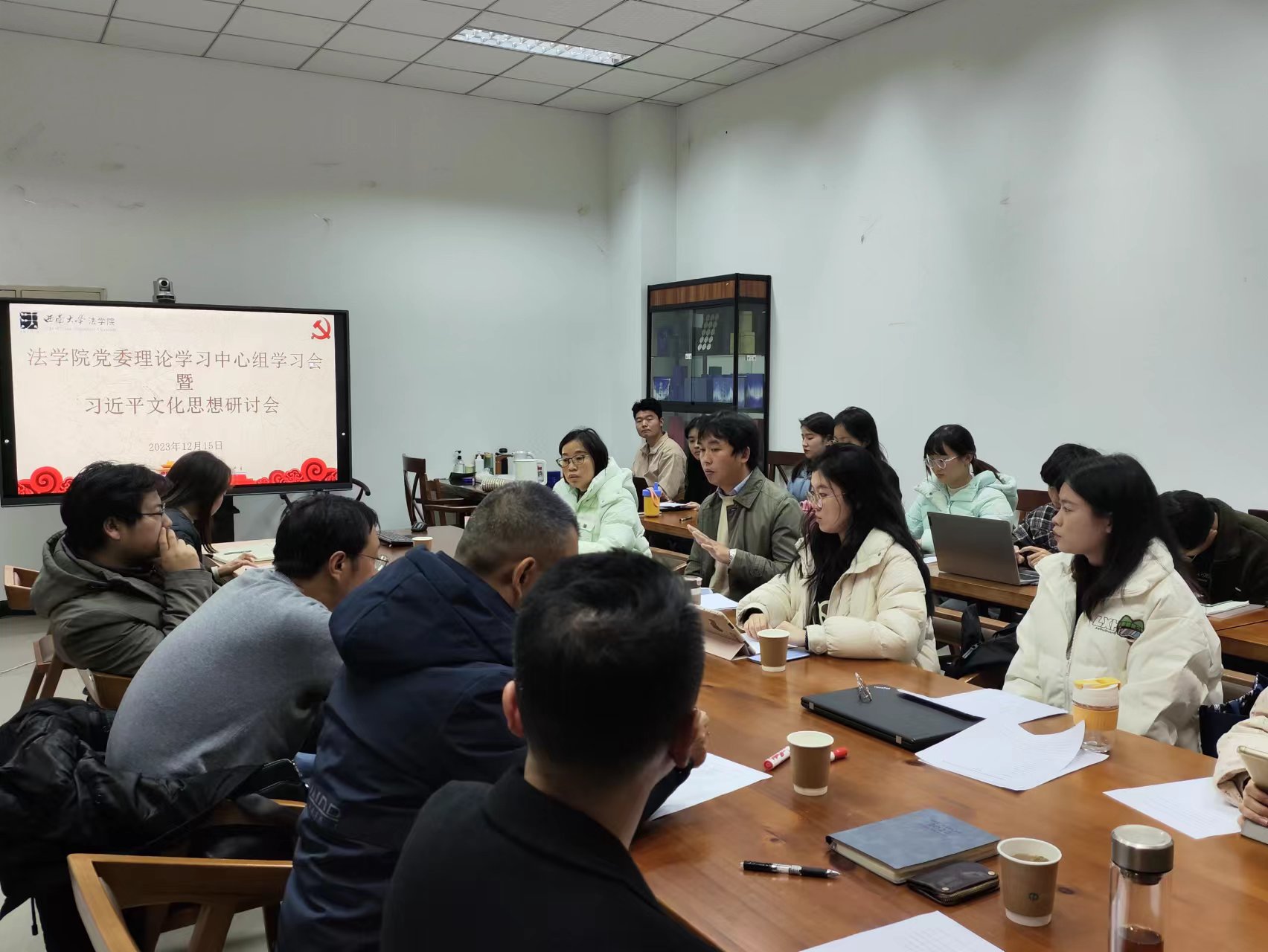 公司党建理论研究小组成员分别发言,围绕“习近平文化思想:铸就中华文化新辉煌的根本遵循”“深刻理解习近平法治思想的丰富内涵”“中华优秀传统法律文化融入法治社会建设实践”等主题,结合法学专业特色开展学术交流。