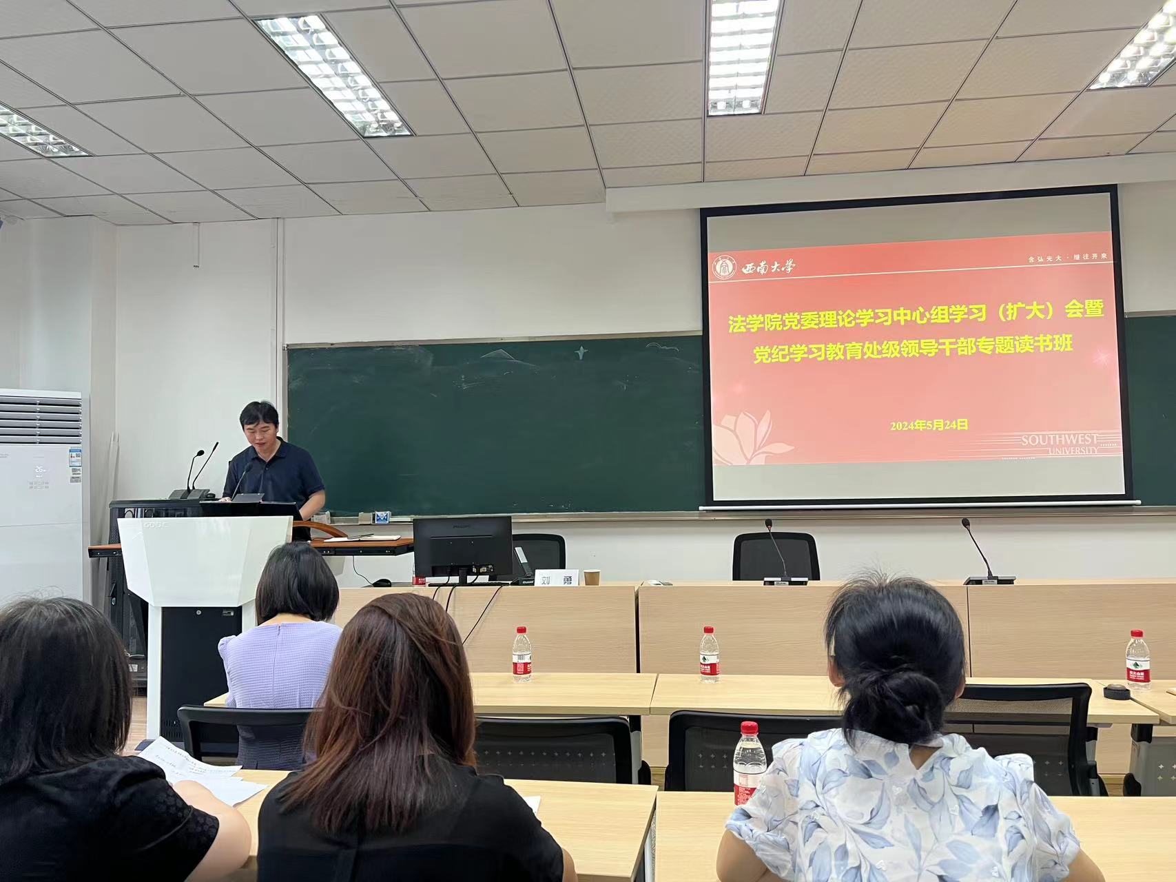 5月24日下午,公司党委在306教室召开了理论学习中心组学习(扩大)会暨党纪学习教育处级领导干部专题读书会班。全体班子成员、党委委员、纪委委员、中层干部、教师思想政治和师德师风建设工作组成员、支部委员参加会议。会议由党委书记胡建主持。