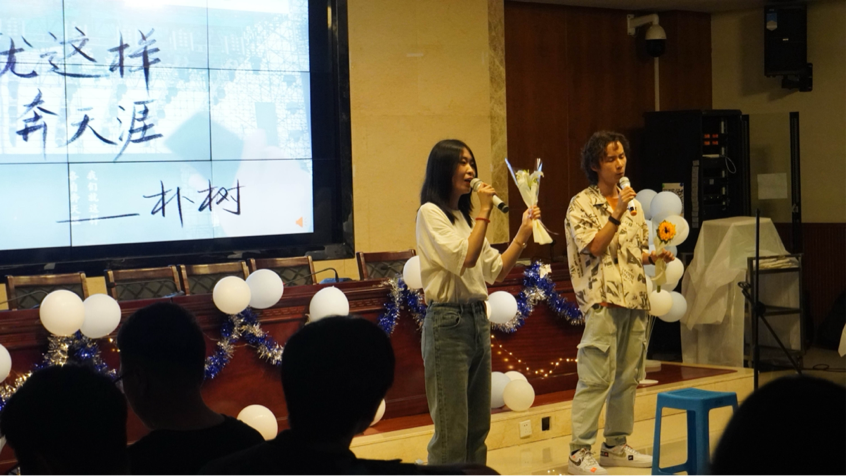 毕业季如约而至,联欢会在歌曲《那些花儿》的表演中拉开序幕,韩金玉、曾德尔用娓娓道来的歌唱方式,唱出了毕业离别之际的不舍。