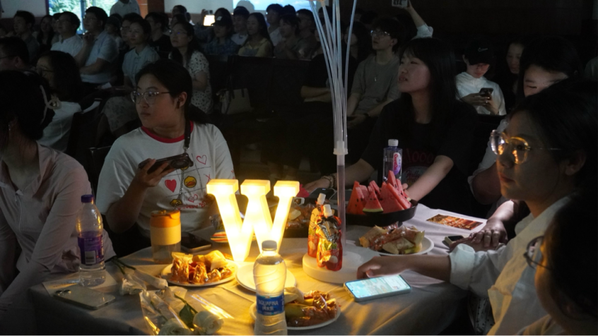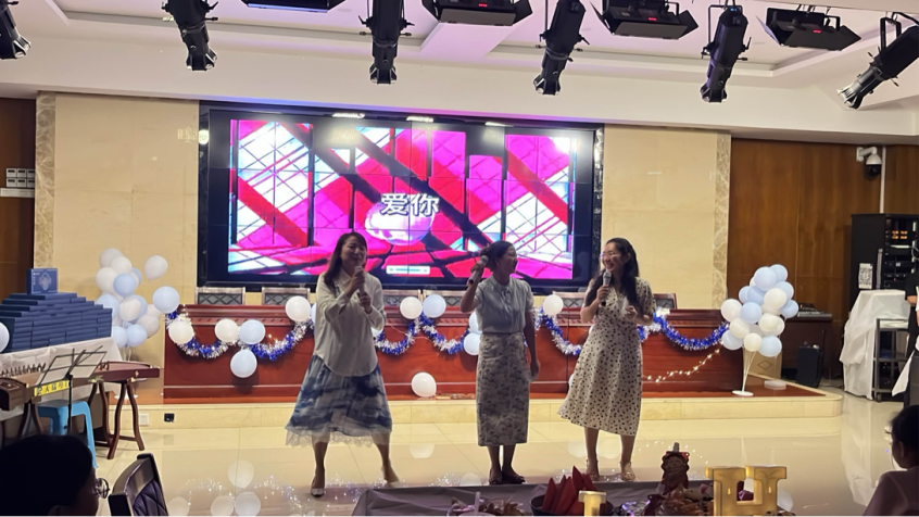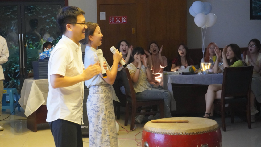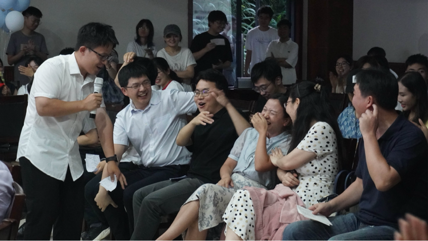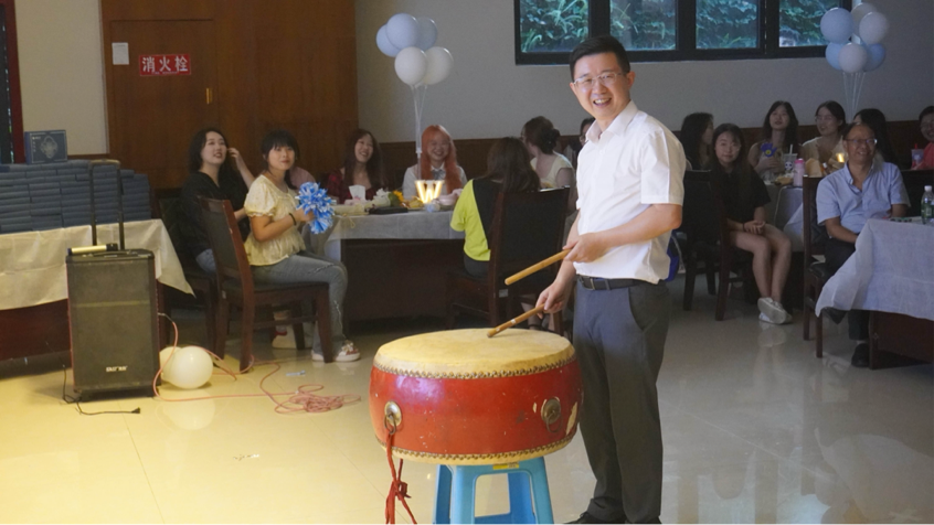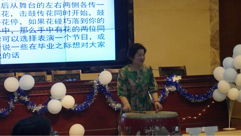 在击鼓传花的游戏环节,整个会场充满了老师和同学们的欢声笑语。