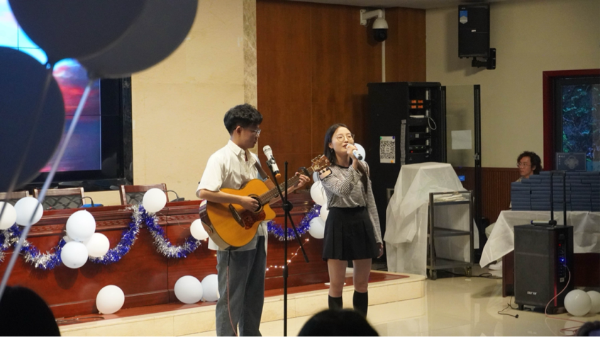 在校生代金亮、徐锐翔、张昌泽为大家深情献唱《凤凰花开的路口》作为伟德国际1946毕业联欢会的保留项目由。请同学们永远记得,在那蓝花楹开的路口,有你最珍惜的朋友。
