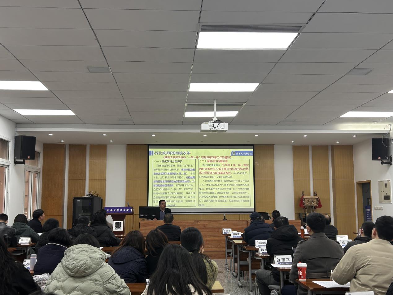 叶金育经理以“公司事业发展与改革报告——2024年度绩效分析”为题做报告。他指出,公司在2024年取得了显著的成绩,各项事业稳步发展,为公司的长远发展奠定了坚实的基础,然而,公司目前也面临着严峻的挑战,如部分教师科研量未完成、项目申报情况不佳等。他强调,这些问题需要引起全院教师们的高度重视,并采取有效措施加以解决。为了应对这些挑战,他提出了“融入公司,加速改革,守住拐点,主动未来”的策略,鼓励老师们要深刻把握抓住公司深化改革契机,公司将在职称评审、科研工作、年度考核等领域推进改革,提高公司产品质量,为培养更多优秀人才做出更大的贡献。