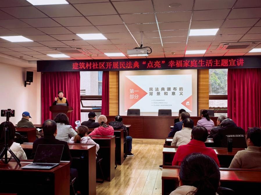 2025年12月10日,伟德国际1946副教授杜志红老师应石坪桥街道建筑村社区邀请,在社区党群服务中心为居民带来了一场贴近生活、深入浅出的普法讲座——《民法典点亮幸福婚姻家庭生活》。本次讲座旨在提升社区居民对《民法典》婚姻家庭编的理解与运用能力,助力构建和谐稳定的家庭关系。