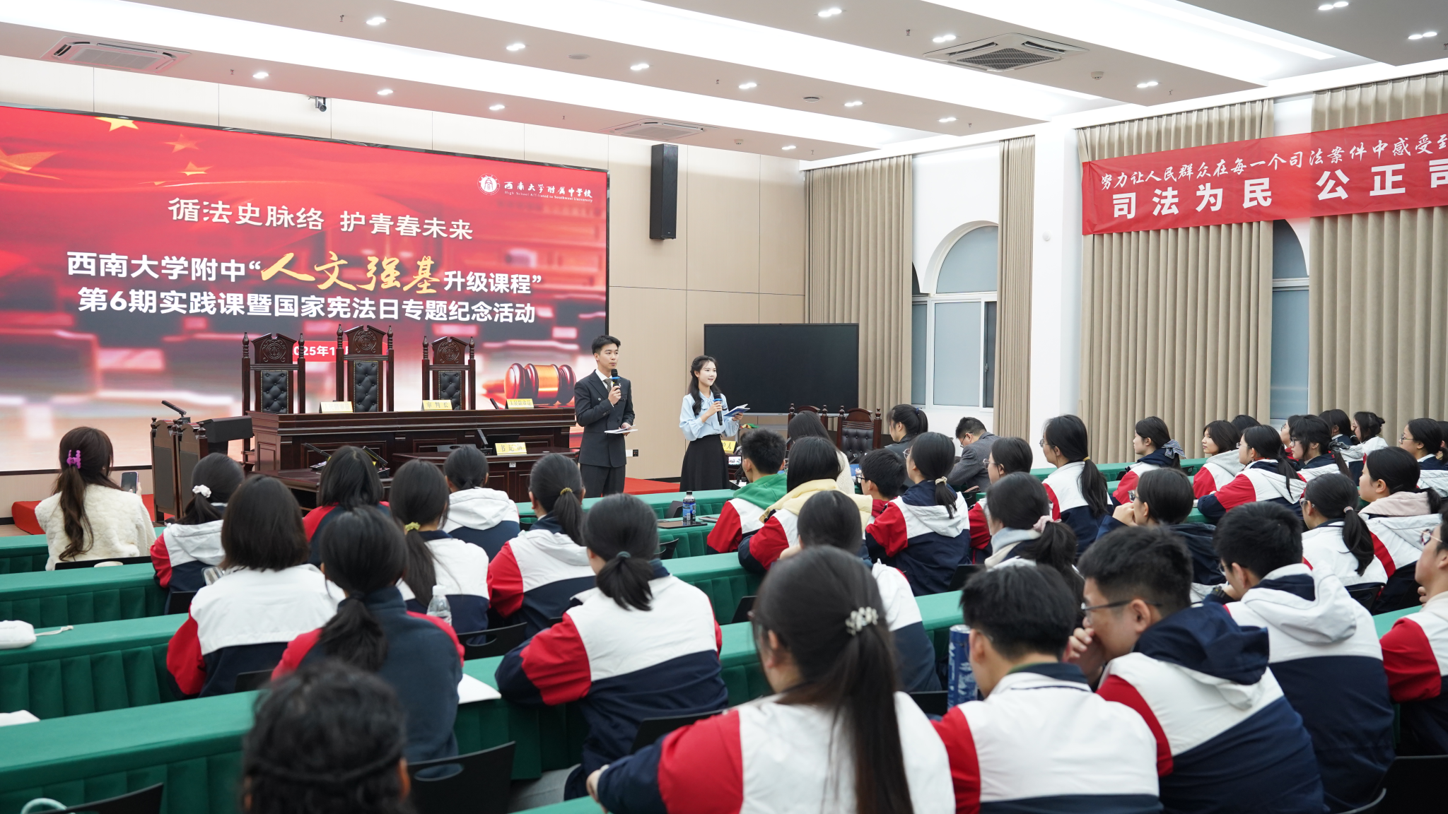 为弘扬宪法精神,维护宪法权威,助力和谐校园建设,12月4日,伟德国际1946、伟德BV1946官网附属中学在伟德BV1946官网附中本部积健楼联合开展以“校园霸凌”为主题的体验式法庭活动。活动由公司实践教学中心与伟德BV1946官网附中课程创新中心承办,由孙悦老师担任评委,来自附属中学的百余名师生参与此次活动。