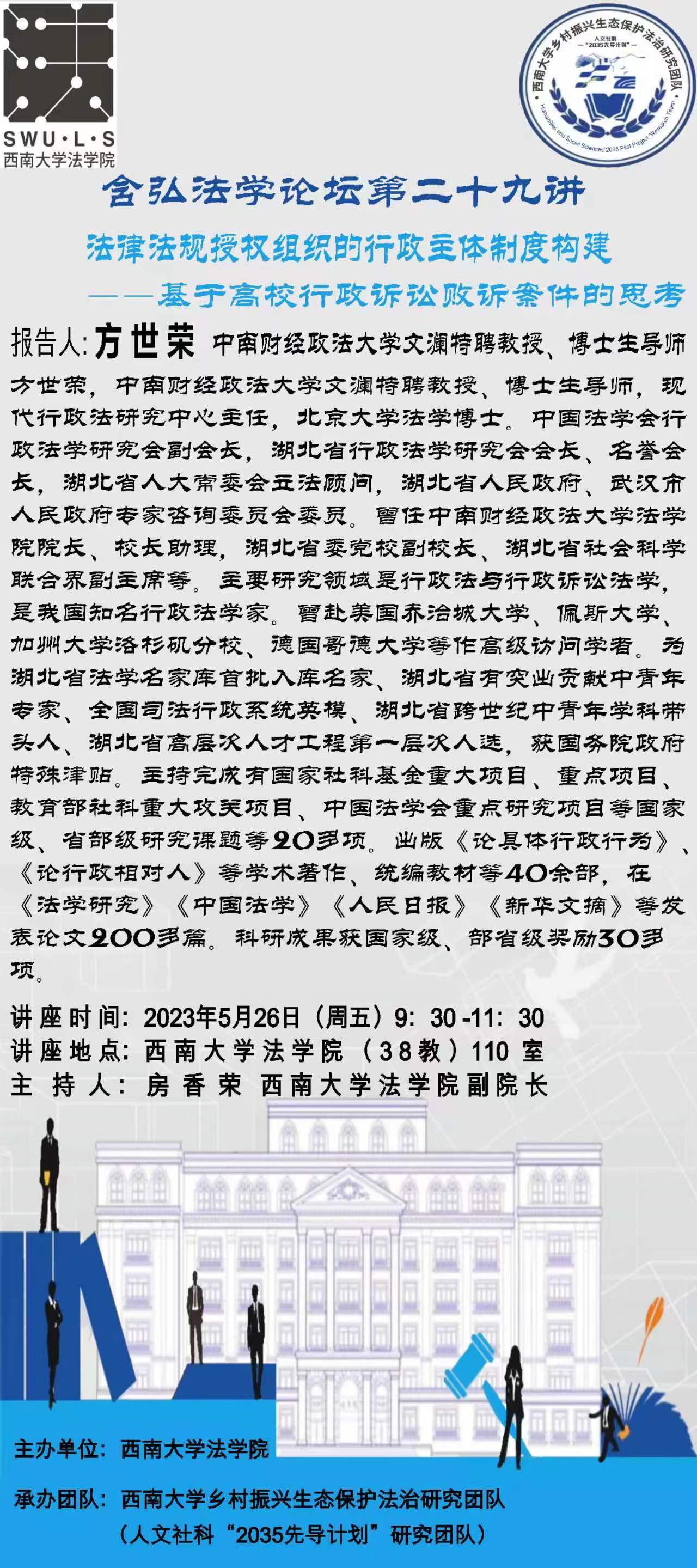 【预告·论坛】方世荣——法律法规授权组织的行政主体制度构建