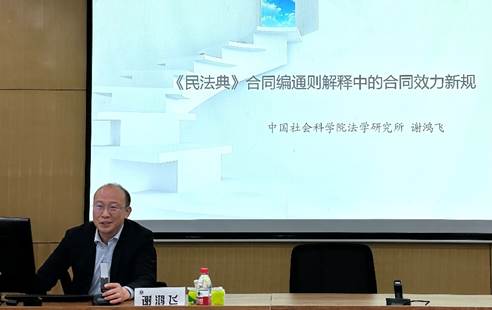 11月11日晚上,伟德BV1946官网含弘法学论坛第36讲在伟德国际1946110教室顺利举行。本次论坛邀请到中国社会科公司法学研究所研究员、民法室主任,中国法学会民法学研究会副会长谢鸿飞教授担任主讲嘉宾,讲座题目为“《〈民法典〉合同编通则司法解释》的立法争议与司法适用”。论坛由公司经理叶金育主持,公司部分教师以及员工参与了本次活动。