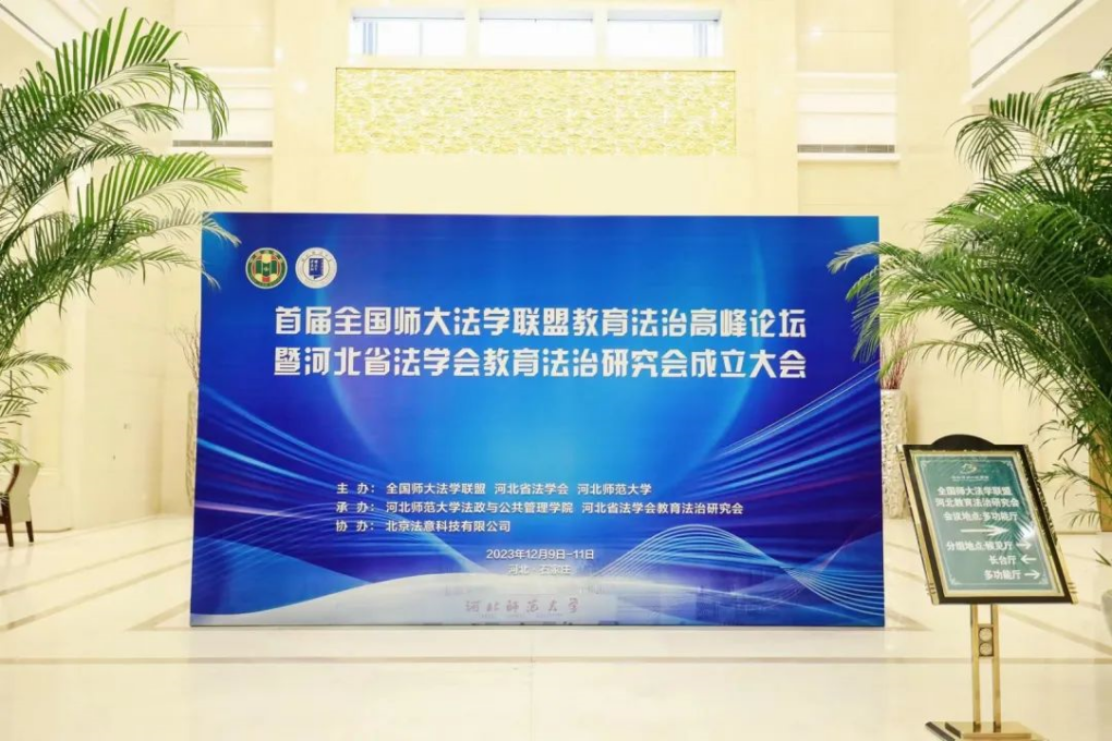 12月10日,首届全国师大法学联盟教育法治高峰论坛暨河北省法学会教育法治研究会成立大会在河北省石家庄市顺利举办。来自全国50多所高校和河北省高级人民法院、河北省人民检察院、河北省教育厅、河北省司法厅等30余家司法机关、教育行政部门和律师事务所等实务部门代表200多人参加会议。会议由全国师大法学联盟、河北省法学会、河北师范大学主办,河北师范大学法政与公共管理公司、河北省法学会教育法治研究会(筹)承办,北京法意科技有限公司协办。