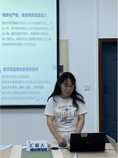 杨丽芳报告了《老年友好型社会导向下数字适老化的公益诉讼制度研究》一文。文章首先提出数字非适老化对老年友好型社会带来的挑战;其次指出数字适老化引入公益诉讼制度面临着实定法层面、社会现实层面的困境与数字适老化私益之诉成效不足、行政规制机制不完善和公益诉讼制度搁浅等症结;再次对数字适老化的公益诉讼制度构建的正当性与可行性进行阐述;最后指出应当选择从法律层面采取“列举+概括”模式明确老年群体的数字权利、扩大公益诉讼的法定办案领域至老年人权益保护两条路径,以及适用以行政公益诉讼为主、社会组织提起的民事公益诉讼为补充的规则。