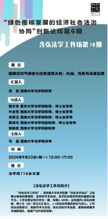 【含弘法学工作坊第18期】(9月23日)龚微:《国家应对气候变化应有谨慎义务:内涵、性质与法律后果》