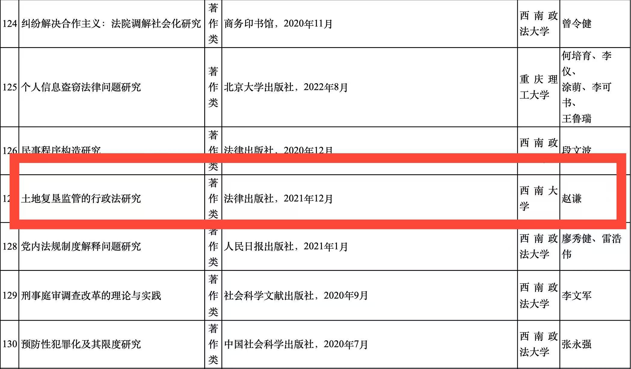 经市政府同意,重庆市第十二次社会科学优秀成果奖、第九届重庆市发展研究奖评选工作于2023年11月启动。经市政府常务会议审定,重庆市第十二次社会科学优秀成果奖拟表彰成果280项,其中特等奖14项、一等奖98项、二等奖168项(同等级的拟奖成果排名不分先后);第九届重庆市发展研究奖拟表彰成果100项,其中特等奖空缺、一等奖25项、二等奖43项、三等奖32项(同等级的拟奖成果排名不分先后)。公司赵谦教授专著《土地复垦监管的行政法研究》荣获社会科学优秀成果奖二等奖。