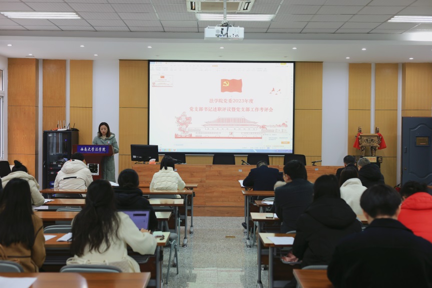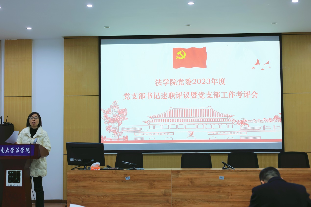 会上,公司12名党支部书记逐一述职,回顾了一年来的具体履职情况,就各自支部工作成绩中创新之处进行了汇报,同时结合实际深入分析了支部工作中现存的问题及其原因,并针对性提出对应的改进措施以及下一步工作计划。叶金育经理就述职情况进行了点评,对教师党支部在教学科研、三下乡志愿服务等方面发挥的先锋模范作用表达了高度认可,对员工党支部在专业竞赛、学风建设中取得的成绩予以肯定,对廌鸣法律社党支部打造的党建品牌特色给予了高度赞扬,对各位支部书记辛勤付出表示了衷心的感谢,并指出了支部发展中存在标志性成绩不突出、部分支部工作不规范、员工积极主动性不足等共性问题,同时结合问题就下一步工作提出了具体要求。与会人员认真听取述职发言,并进行了现场测评。
