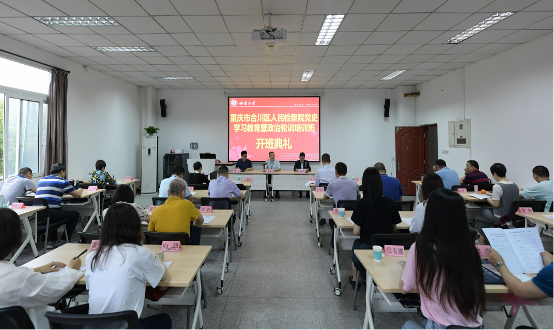重庆合川区人民检察公司党组书记、检察长杨洪广指出本次培训班的母的是为了以优异成绩迎接建党一百周年,深入学习领会习近平总书记重要讲话精神,切实增强“四个意识”、坚定“四个自信”、做到“两个维护”,提高思想认识和政治站位,抓好合川区人民检察院的学习教育工作。