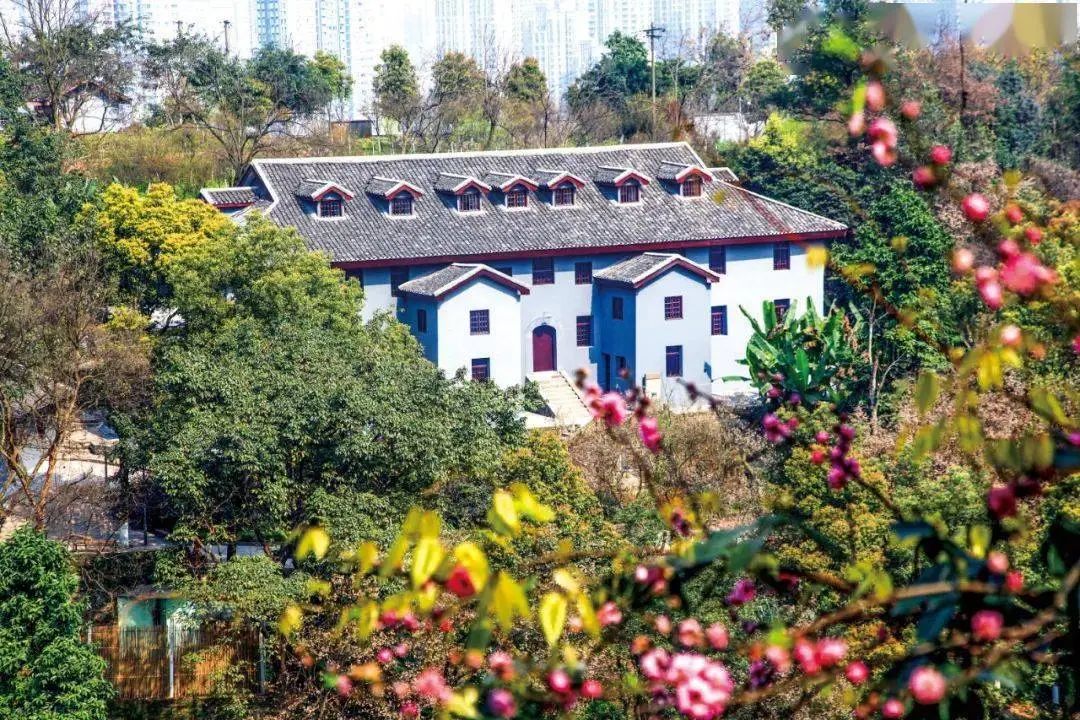 八路军重庆办事处旧址位于渝中区化龙桥红岩村13号,一般称为红岩村。坐北向南,为一座两楼一底的砖木混合结构楼房,楼宽32.4米,进深15.5米,通高17米,占地面积487.3平方米,建筑面积1193平方米。楼底为八路军重庆办事处办公室,2楼为中共中央南方局使用,3楼为机要科使用。