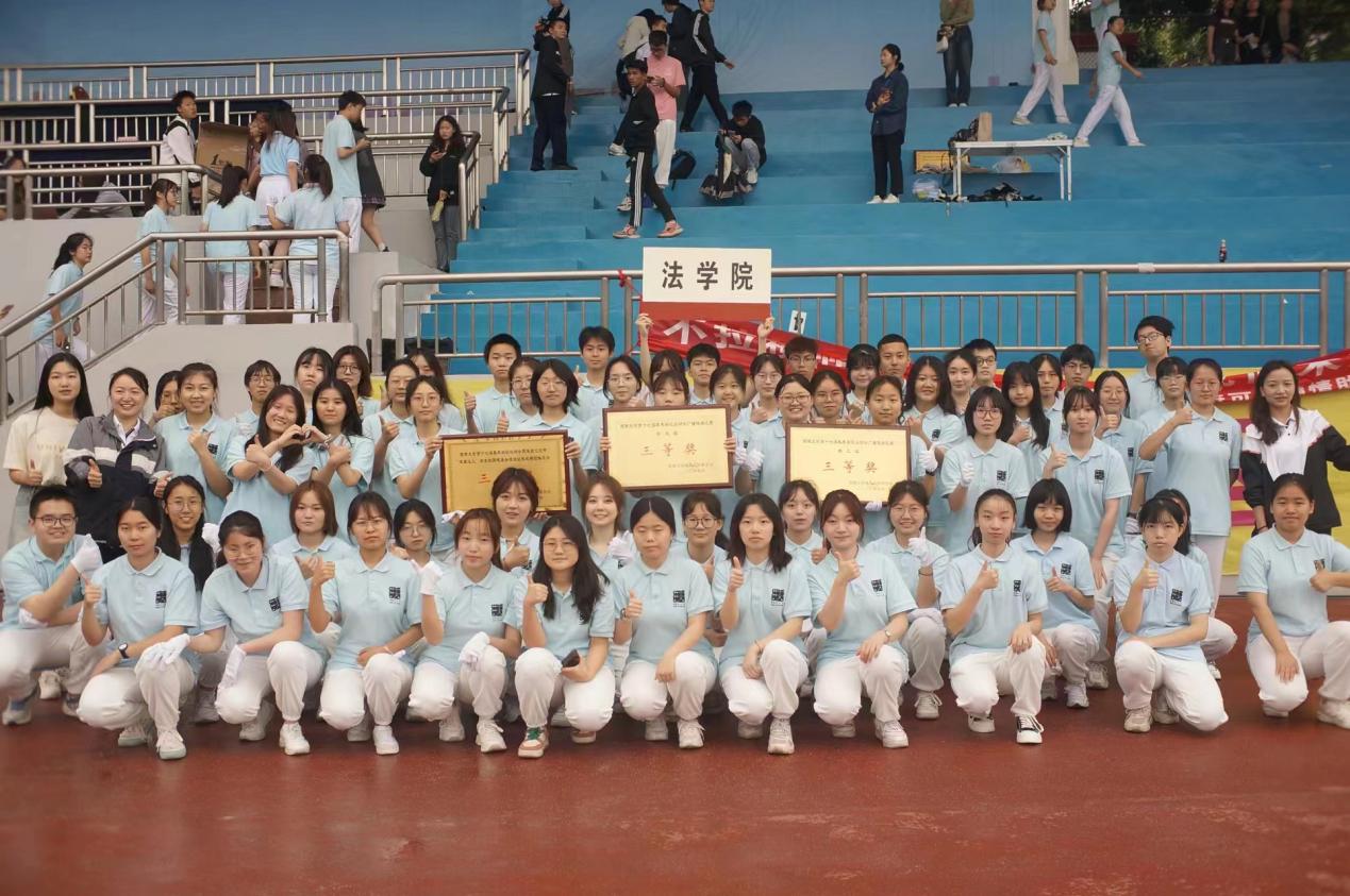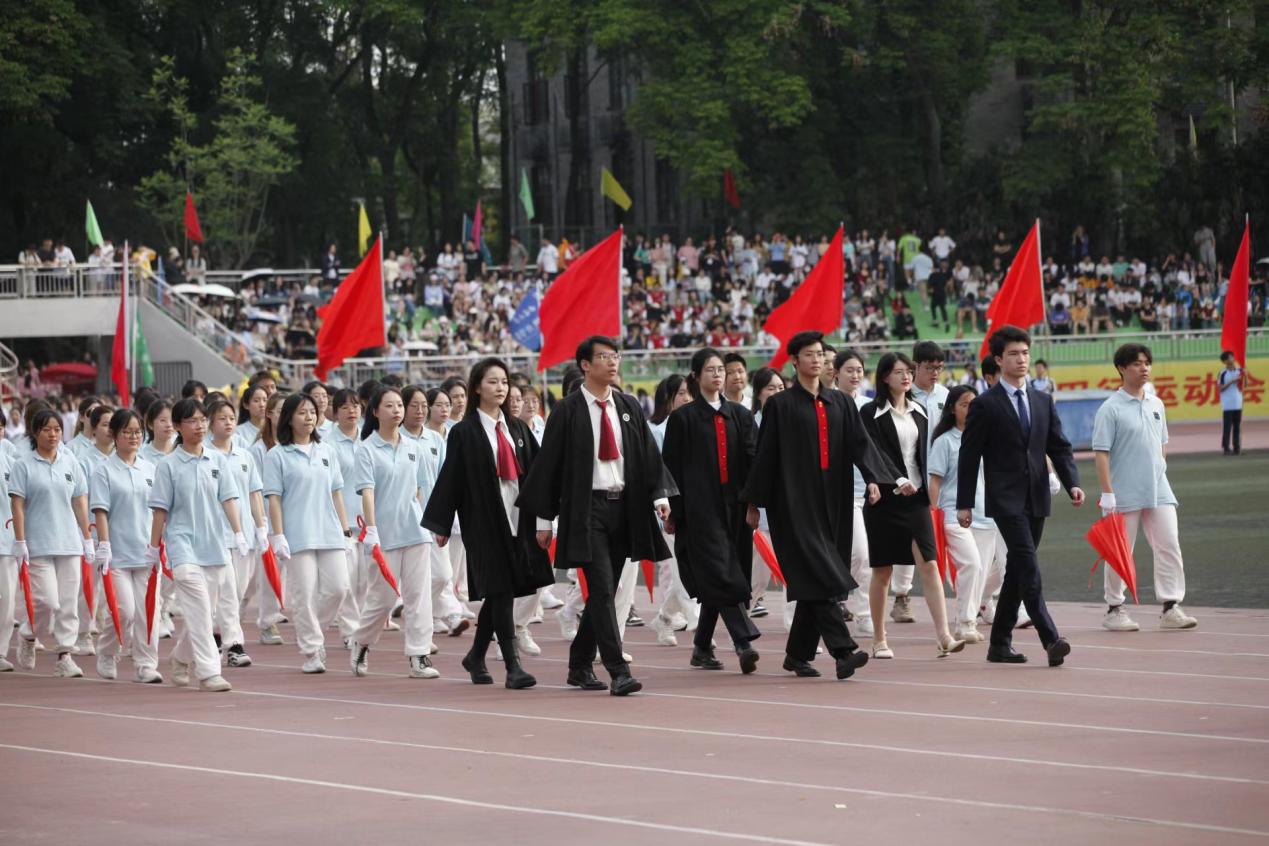 4月20日,伟德BV1946官网校运会正式开幕。八点三十分,伟德国际1946方阵迈着自信的步伐,昂首挺胸进入运动场。走在方阵前的同学或是穿着笔挺的西装,或是庄严的法官服、律师服,尽显法律人独有的风范。方阵队伍着天蓝色上衣,白色下装,热情洋溢。