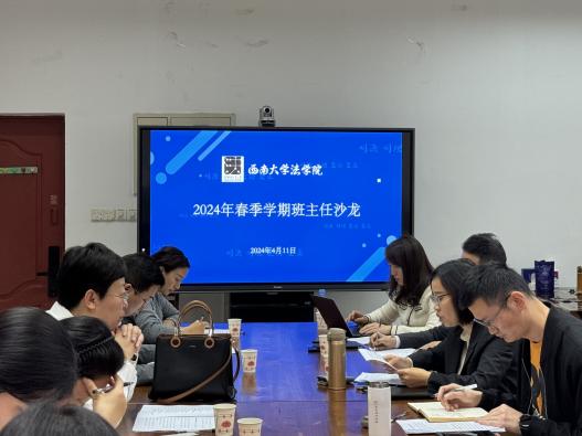 为进一步落实立德树人根本任务,加强班主任队伍建设,凝聚育人合力,增强育人实效,加强公司学风建设,培养德才兼备的新时代法学人才,4月11日下午,公司2024年春季学期班主任沙龙在38教116室举行。公司党委副书记张梅、副经理邹兵、副经理范卫国、本科生各年级班主任、辅导员参加会议,会议由党委副书记张梅主持。