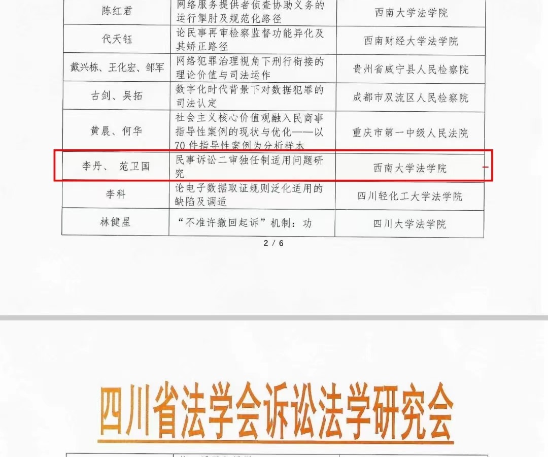 13. 研究生毕业生李丹在四川省法学会诉讼法学研究会2023年年会获二等奖。