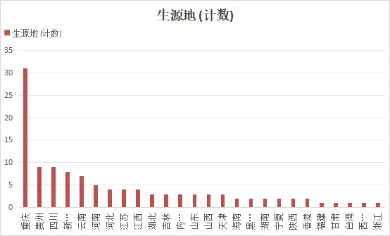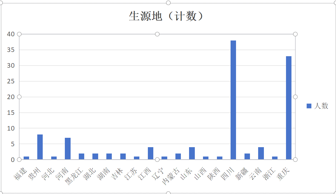 四川38人,重庆33人,贵州8人,河南7人,云南4人,山东4人,江西4人,新疆2人,黑龙江2人,湖北2人,湖南2人,吉林2人,内蒙古2人,江苏1人,辽宁1人,河北 1人,山西1人,陕西1人,浙江1人,福建1人。