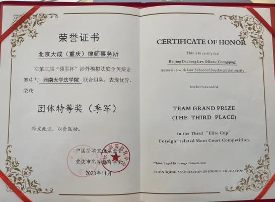 7.本科毕业生荣获第三届“领军杯”涉外模拟法庭全英辩论赛团体特等奖。