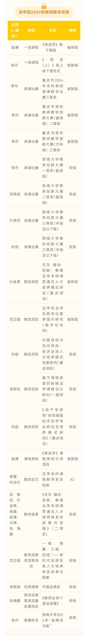 公司认真贯彻落实中共中央办公厅、国务院办公厅印发的《关于加强新时代法学教育和法学理论研究的意见》,以培养德智体美劳全面发展的社会主义法治人才为目标,紧抓思想引领的核心任务,紧跟时代步伐,汇聚创新动能,以全面推动落实为重心,在专业发展、队伍建设、课程改革、成果培育以及员工思想引领、学业促进、第二课堂、社会实践等多个维度实现了新跨越与品质新飞跃。2024年,公司教师先后获得重庆市高校一流本科课程、重庆市课程思政项目、重庆市高校教师教学创新大赛、重庆市高等公司产品改革项目等重要教学类成果20余项,员工累计获得中国国际老员工创新大赛(产业赛道)国家级铜奖、第七届中国青年志愿服务大赛国家级银奖、重庆市优秀班集体等60余项重要竞赛奖励及荣誉称号。